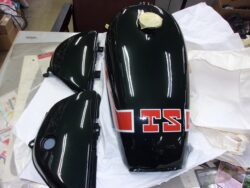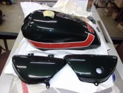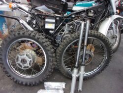 ペイントハウスヒットさんにハスラ-400の外装を塗装に出して出来上がってきました。流石ですね😄👌、ノンビリしてましたがRE5が次に控えていますのでドラムのペイント、スポ-クとタイヤの交換、フロントフォ-クインナ-チュ-ブ、オイルシ-ルの交換をして急ピッチBefore afterを行います。😄⤴️