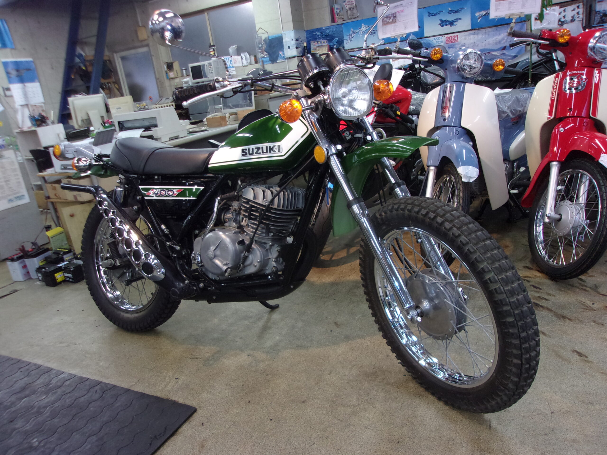 私のお気に入りのハスラ-400の1型をお買上げ頂き有り難う御座います。早速整備に取り掛かります、キャブのO/Hを行い燃調キットの交換、バッテリ-の交換、前後タイヤの交換、フォークシ-ルの交換をして車検を受けます、ライトの明るさで苦戦しそうですが頑張って整備をしますので楽しみにお待ち下さい。😄✌️