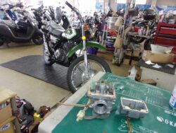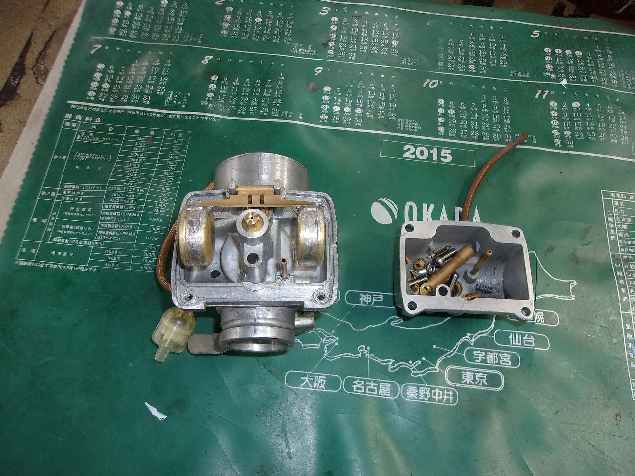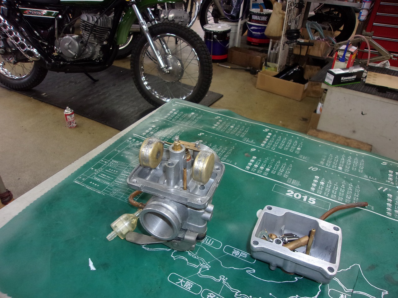お買上げ頂いた綺麗にレストアされたハスラ-400の整備に取りかかりましたがキャブが、なんじゃこれ😱、キャブが放置特有のグリ-ン錆がこれもキャブが「やっつけ仕事」でした、早速清掃して燃調キットの交換をしたのですが、フロートの中にガソリンが最悪😱、前回CB450のフロートで苦戦しましたので今回はプロの技術集団のBSUさんにお願いして出来上がって来ましたので組付けます 。やっぱり古いバイクは色々有りますね。😖💦