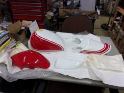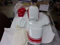 ペイントハウスヒットさんに出していたクランクシャフトが折れたモンキ-の塗装が意外と早く出来上がって来ました。お客様のご依頼通りにZ2白/赤カラーに出来上がり完璧です。急ピッチでエンジンの方を組付けて再度試乗セッティングを行いますがまた壊れるのが怖いです。😅
