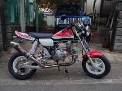 外装の組付けをして試乗開始です。排気量は105ccと小さくなりましたがノーマルの4速から5速クロスミッションになりましたので前よりもスムーズな加速で速くなった感じで外装もZ-2白/赤とカッコ良くなりました。眺めて良し、乗って楽しいモンキ-になりました。😄✌️