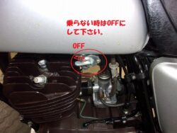 この寒さの中でもチョークを引いてアクセルを回さずキック一発始動になりましたので最終通勤試乗を行いましが全く問題ありませんので安心して納車出来ます。今後の為に予備のプラグ、ヘッドライト球、テール球、2サイクルオイルとプラグレンチをお送り致しますのでお使い下さい。😄👌