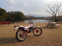 広島から4時間かけて寒い中バイクに乗ってご来店頂きTY250Sをお買上げ頂き有り難う御座います🙇♂️。去年の1月に完成させて試乗を兼ねて山籠もりしたり英彦山に雪中トライアルに行ったりと楽しんだTY250S、このバイクが火付け役となり昨年はトライアル登山に嵌って体力作りとテクニック向上で遊びました。試乗済みで快調ですが再度細かい整備を行いますので楽しみにお待ち下さい。😄👌