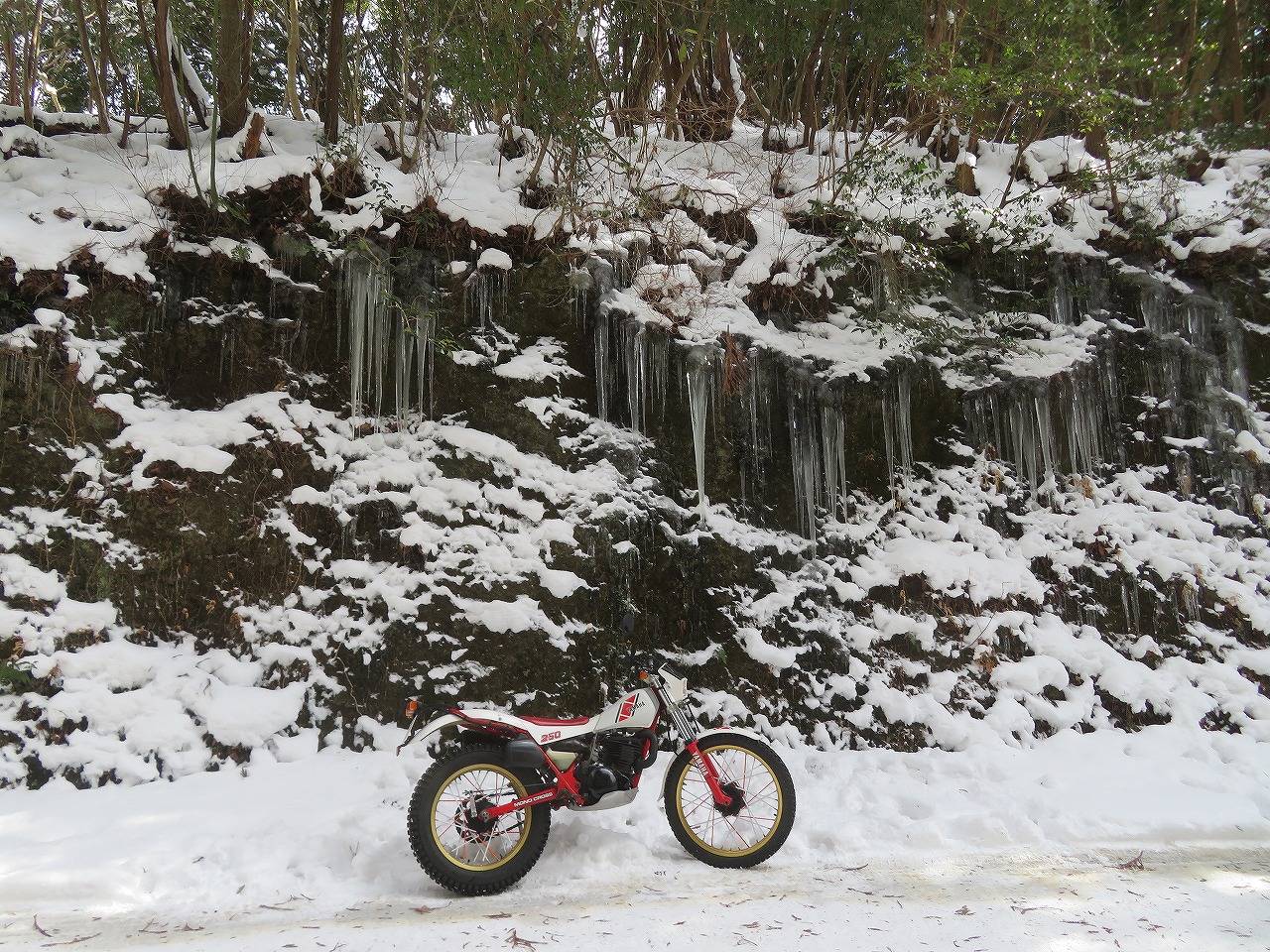 広島から4時間かけて寒い中バイクに乗ってご来店頂きTY250Sをお買上げ頂き有り難う御座います🙇♂️。去年の1月に完成させて試乗を兼ねて山籠もりしたり英彦山に雪中トライアルに行ったりと楽しんだTY250S、このバイクが火付け役となり昨年はトライアル登山に嵌って体力作りとテクニック向上で遊びました。試乗済みで快調ですが再度細かい整備を行いますので楽しみにお待ち下さい。😄👌