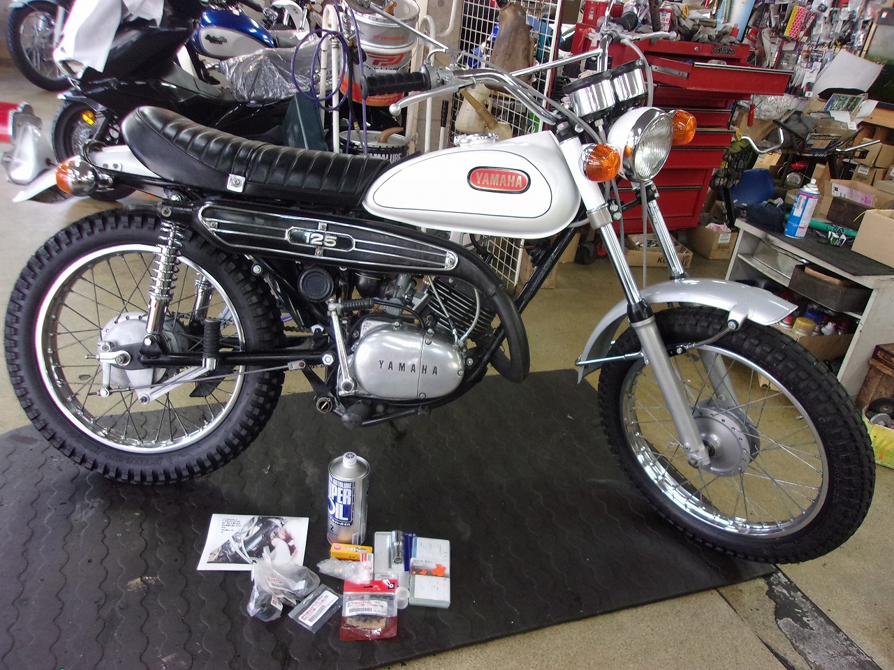 四国香川県からお買上げ頂きましたAT-1昨日引取りに来ました。ご自宅への到着予定は4月6日から10日の予定になっております。一緒にスペアのプラグ、電球、2サイクルオイル、プラグレンチ、交換したスプロケット、予備のフロントフォ-クのオイルシ-ル、フロントスプロケットオイルシ-ル、交換した燃調キットを預けましたのでお受け取りの程宜しくお願い致します。🙇♂️