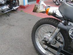早速、整備に取り掛かりました、フロントフォ-クのオイル漏れ、後ろリムのスポ-ク折れ、オイルポンプからのオイルもれ等の修理の真っ最中です、他にマフラ-の排気漏れの修理も有りますがエンジンは好調なので1970年代の2サイクルエンジンのサウンドを楽しみにお待ち下さい。