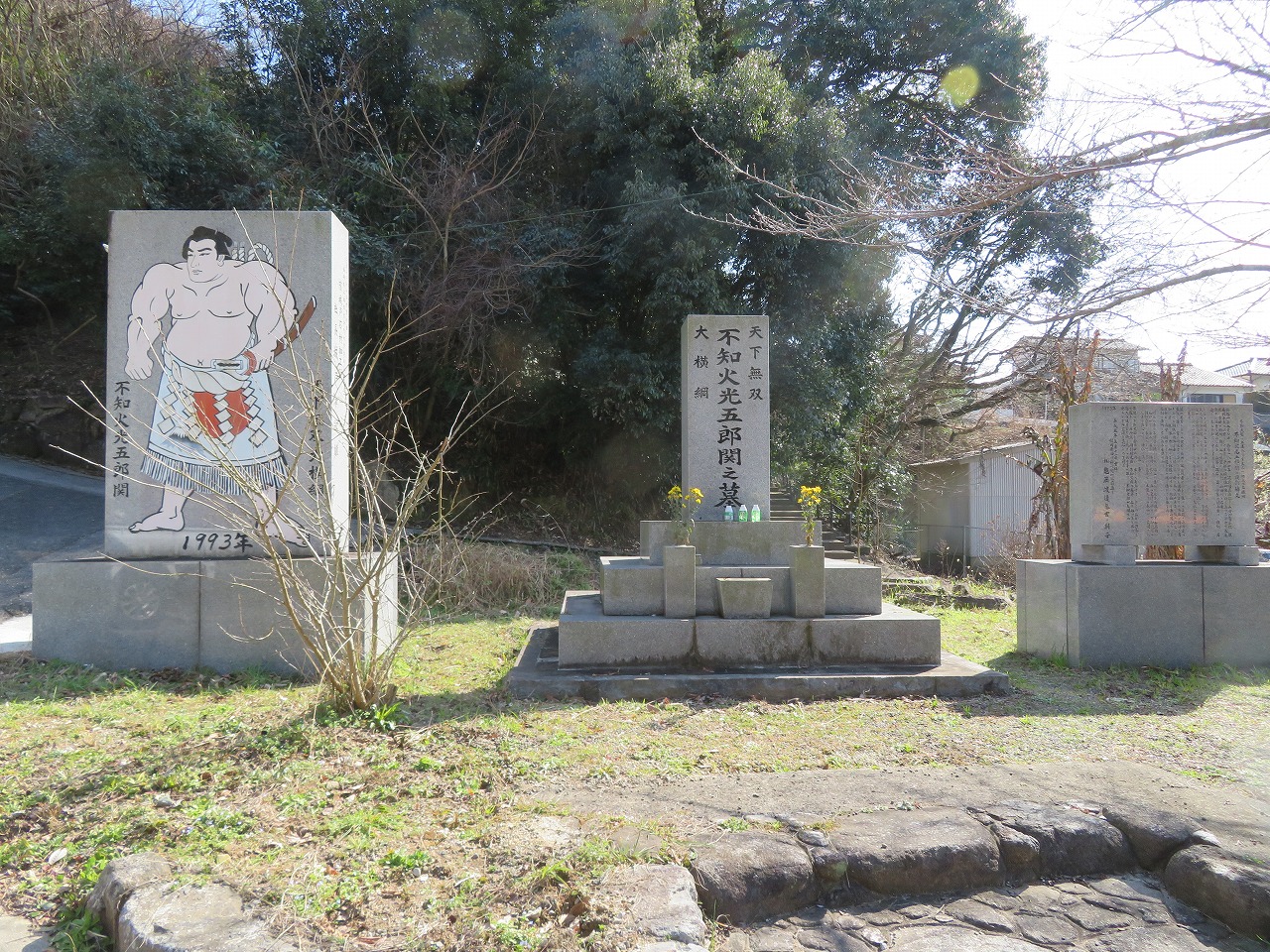 隣接して筑前國嘉麻郡下山田出身の伝説の横綱「不知火光五郎」の墓碑が有ります。