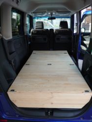 脅威的なコロナウイルス感染で人との接触を避けるためにソロキャンプの準備をしています、HONDA.N-BOXの後部座席の部分にフラットになる折り畳み式ベットを作っちゃいました、使用しない時は後ろに収納出来て車中泊の時にはフラットにしてベットになります。