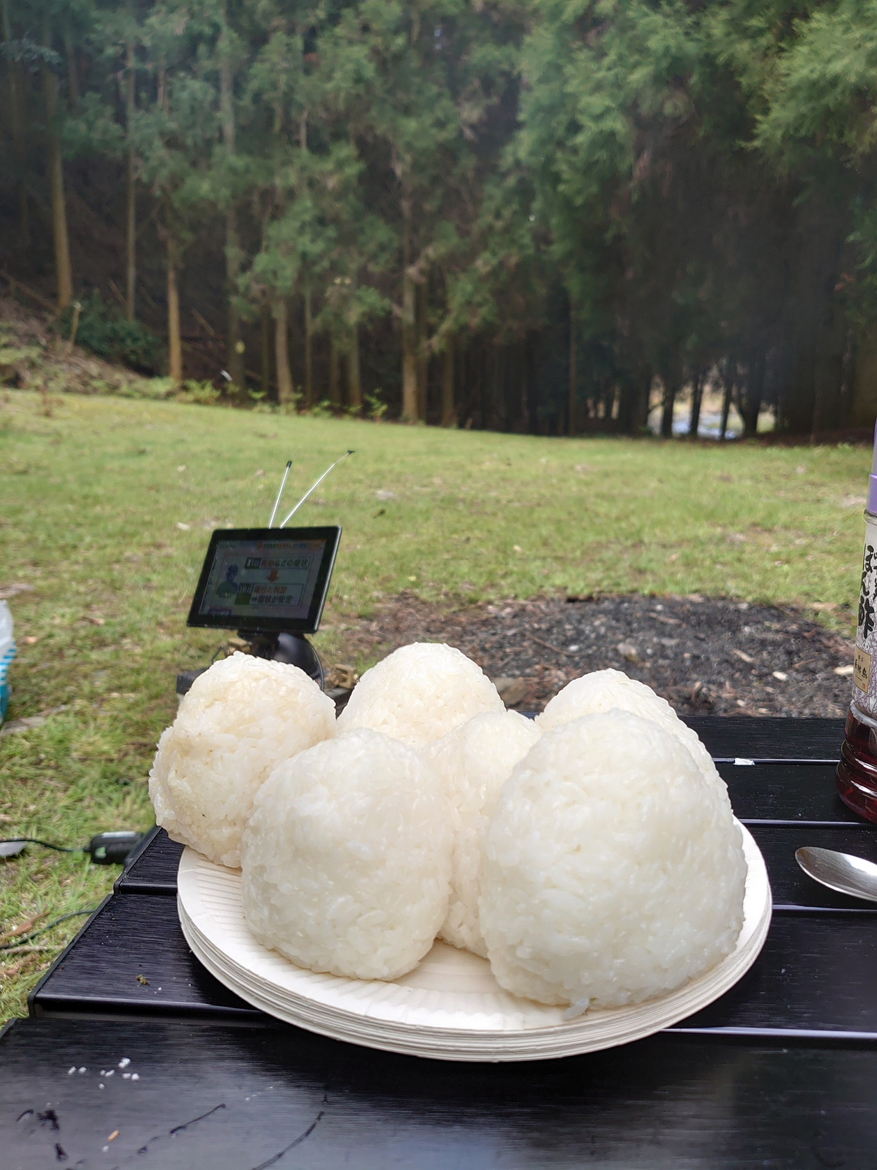 翌朝は6時に起床してモ-ニングコ-ヒ-を飲んでご飯を炊いてお握りを作っての楽しいキャンプ生活を過ごして来ました。