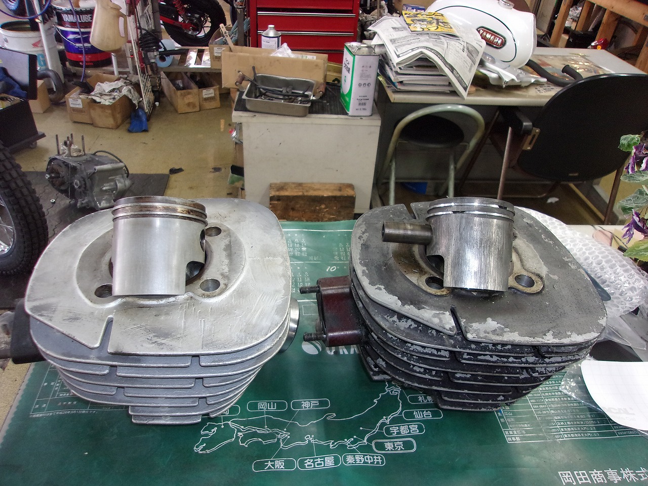 6年前にお買上げ頂いたYAHAHA.DT-1が下取りで入ったのですがエンジンの異音が気になり嫌な予感がしますのでシリンダ-をバラシて見たら案の定シリンダ-、ピストンが焼き付いていました。早速オークションでエンジンを仕入れてシリンダ-、ピストンを確認したらまだ生きていましたので早速に交換致します。これで安心して販売出来ます。😄⤴️