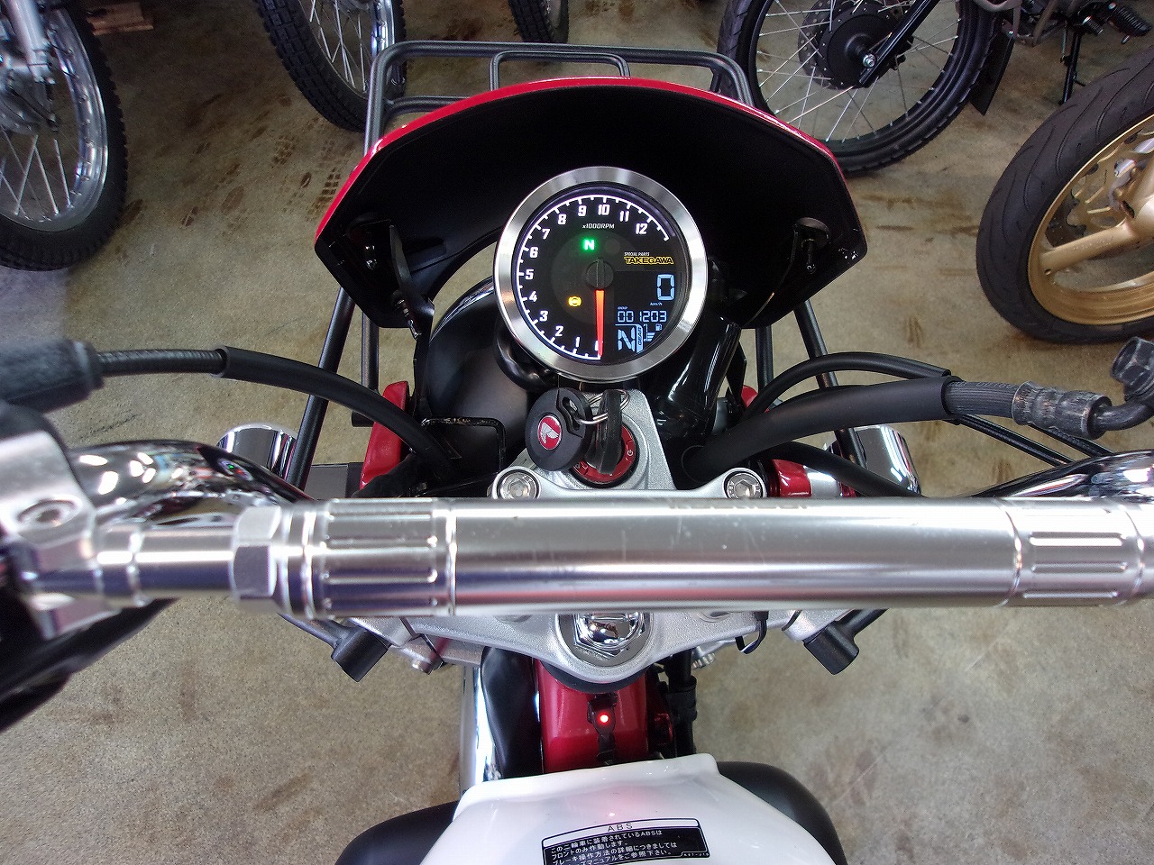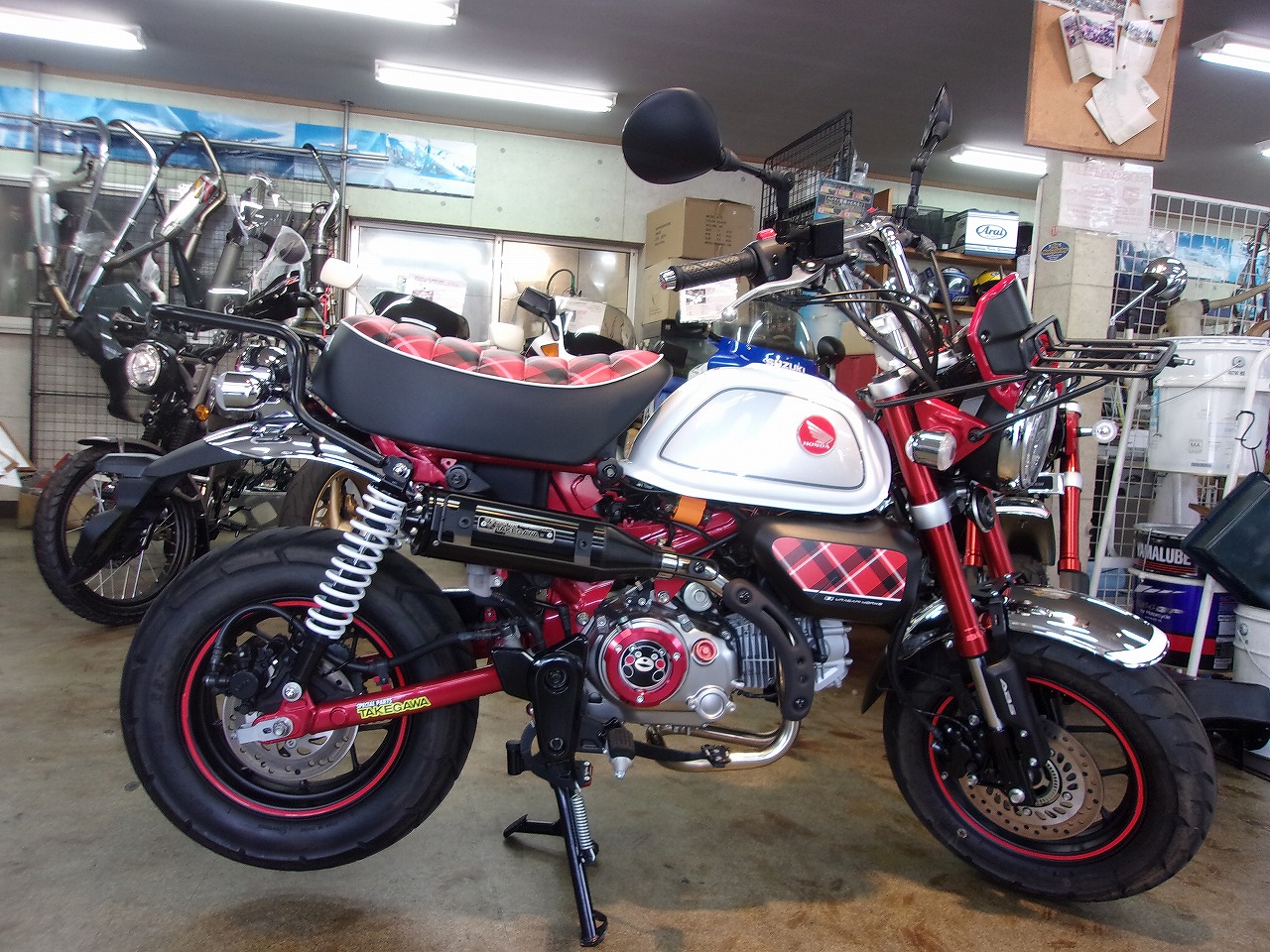 武川JMCAマフラ-、ギアポジ付き武川スーパ-マルチDNメ-タ-、前後キャリア、Rショック、フロントダウンフェンダ-、安心の純正盗難防止アラーム、何と言ってもセンタ-スタンドが付いています。パーツ総額20万円以上のカスタムがされています。多少はお高くなりますが程度良好のお勧めの5速モンキ-なのでお探しの方はお早目のお問合せを😄❗