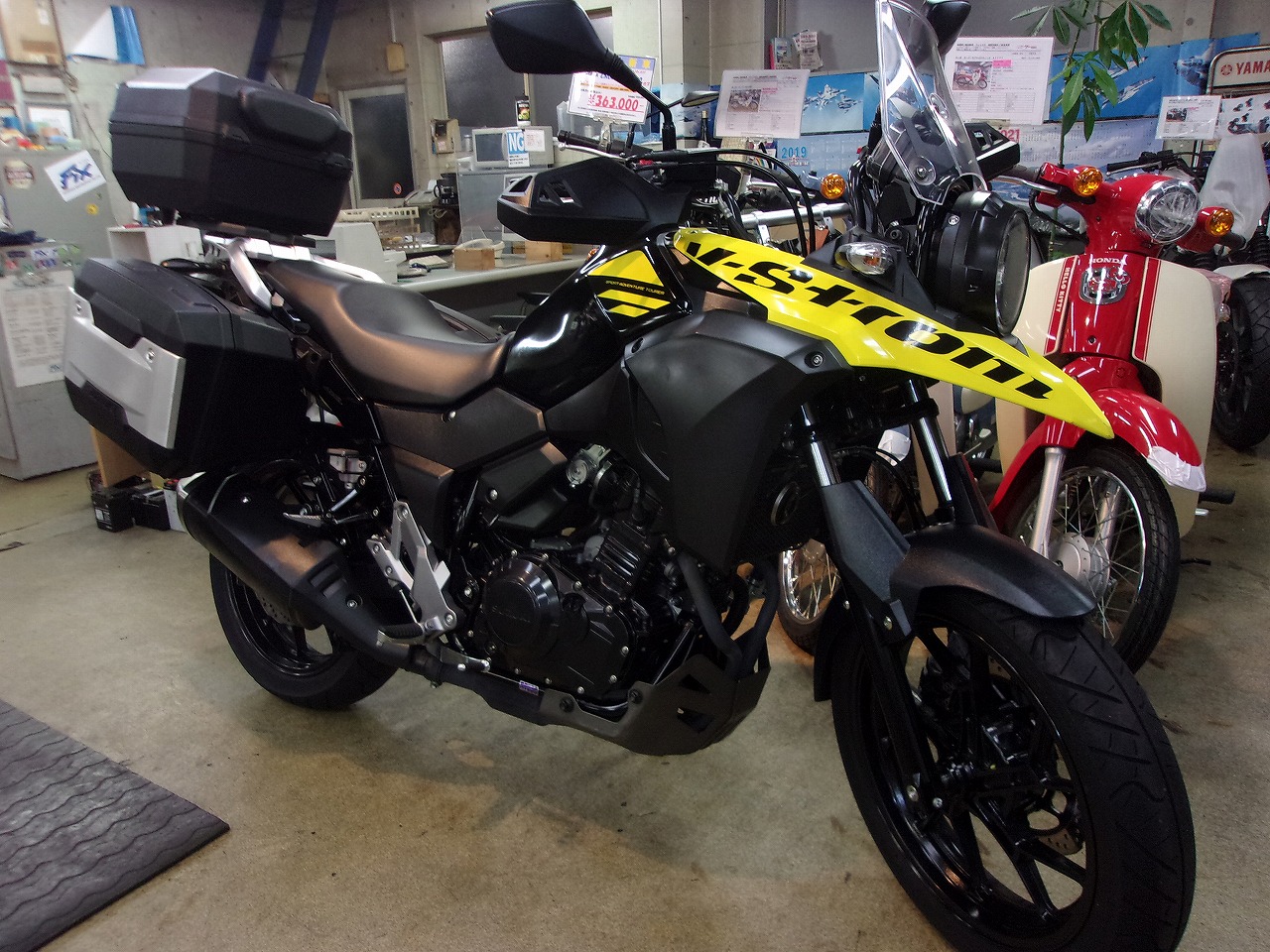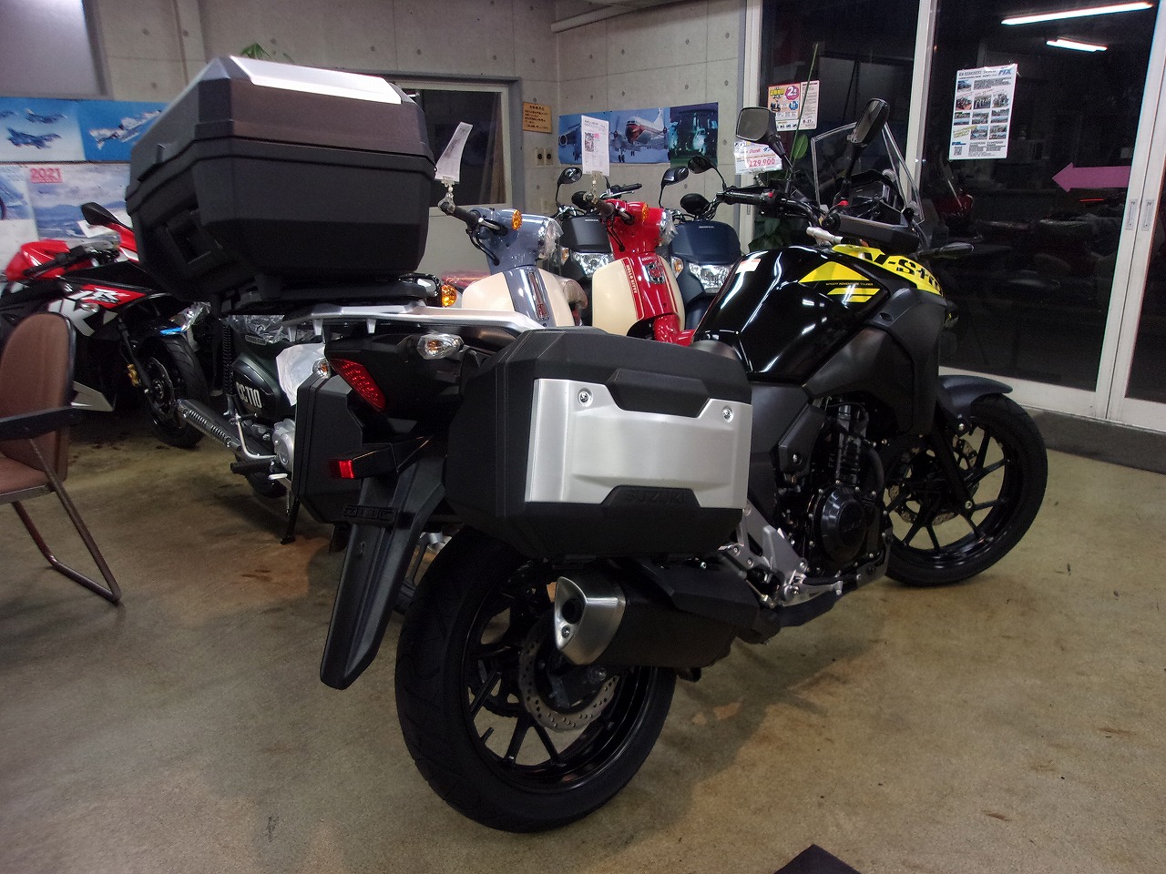 下取りでSUZUKI.V-ストロ-ム250ABSが入庫しました。走行も少なく3.486kmでスズキ純正サイドケ-ス、トップケ-ス付きです。ホ-ムページ先行販売でお安く販売致しますのでお探しの方はお早目のお問合せを😄⤴️☎