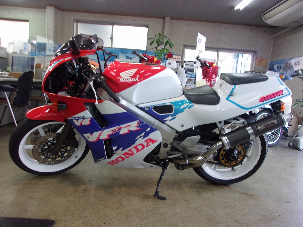 常連さんからCB750FBをお買上げ頂き下取りで1年前にお買上げ頂いていたHONDA.VFR400Rが帰って来ました。車庫保管で常に磨いていましたので売った時より更に綺麗になっていました。メカにも詳しい方なのでエンジンも絶好調です。直ぐにでも販売しますのでレアなVFR400Rをお探しの方は早めのお問合せを。😄⤴️