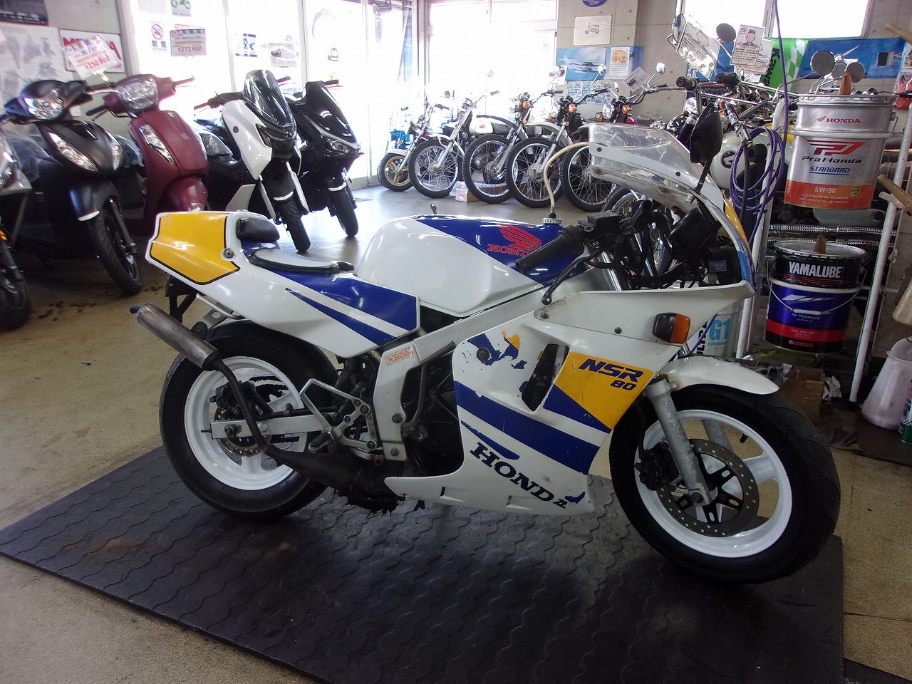 今度仕入れたのは2サイクルエンジン、12PS、水冷、6速、乾燥重量78kg、1990年モデルのHONDA.NSR80テラカラーで楽しそうなバイクです。エンジンのリング音も無く快調ですが外装が手強そうですが頑張ってレストアします😅💦、先行注文も可能ですよ。😄👌