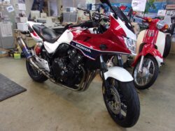 生産終了となり価格高騰した人気のCB400Sボルド-ル・レボが入庫しました。2017年式で走行少なく7.853kmでETC付きワイバンマフラ-、フェンダ-レス、スライダ-カスタム済み、車検2018年9月付きのお勧め優良車です、お見逃し無く😄⤴️