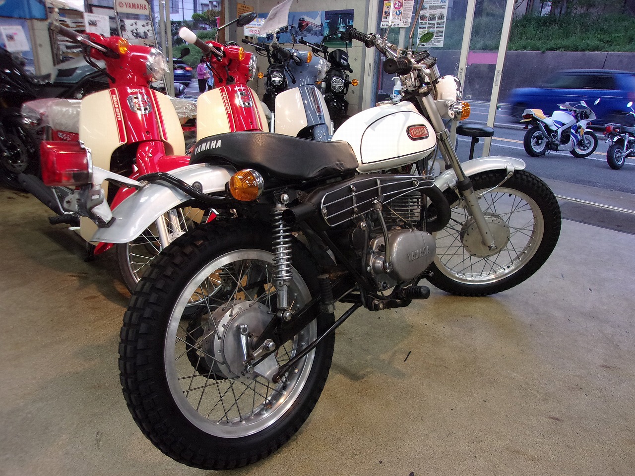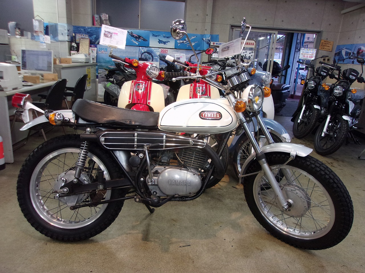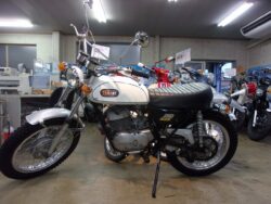 オ-クションでも球数が少なくなり仕入れが難しくなったDT-1が入庫しました。ほぼオリジナルに近い状態した。エンジンの始動確認もしましたが異音も少なく快調なのでこれからキャブの燃調キット、ワイヤ-類の交換を行い一部手直しをして試乗開始です。まだまだ時間が掛かりますが完成までしばらくお待ち下さい。
