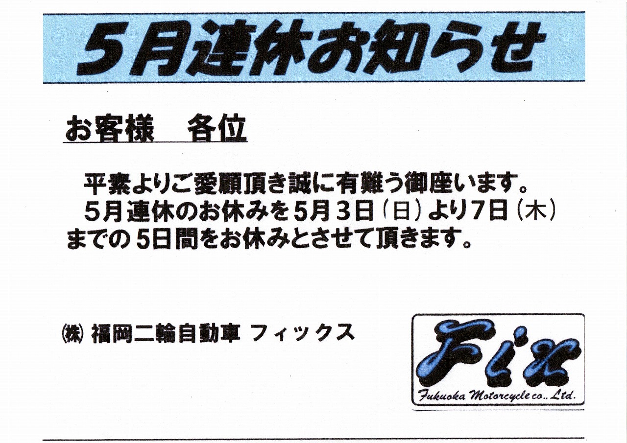 - 🙇♂️ ゴールデンウィークのお休みのお知らせ 🙇♂️ 2026年4月26日
